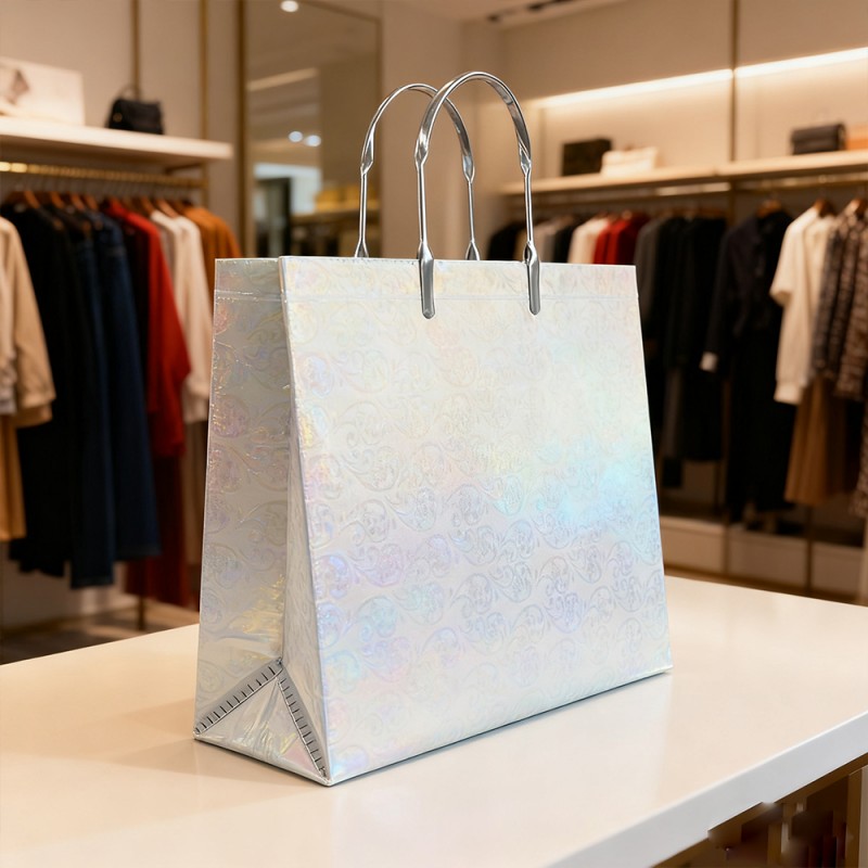 กระเป๋าโท้ตของขวัญเคลือบฟิล์มแวววาวจาก QINGDAO RED GOLDEN STAR PACKAGING AND PRINTING CO., LTD ที่มีพื้นผิวแวววาวเป็นประกายที่ดึงดูดความสนใจได้ในทันที กระเป๋าที่ทนทานและนำกลับมาใช้ใหม่ได้ผสมผสานความสวยงามสะดุดตาเข้ากับความแข็งแกร่งในการใช้งาน ทำให้กลายเป็นกระเป๋าใส่ของที่สมบูรณ์แบบและน่าจดจำสำหรับการขายปลีก กิจกรรม และของขวัญส่งเสริมการขายที่มีผลกระทบสูง