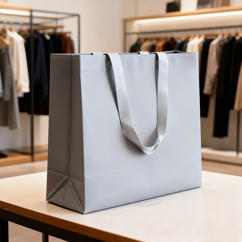 โครงสร้างสามชั้น: ชั้นนอกของ BOPP ให้การกันน้ำที่สมบูรณ์และความเข้ากันได้ในการพิมพ์ที่ยอดเยี่ยม ให้ความทนทานต่อความชื้น ทนต่อการสึกหรอ และรูปลักษณ์ที่สวยงามได้ดีเยี่ยม กระดาษคราฟท์ที่ผ่านการบำบัดเป็นพิเศษมีชั้นกลางที่เรียบและทนทาน ซึ่งช่วยเพิ่มความสามารถในการรับน้ำหนัก ในขณะเดียวกันก็รักษารูปลักษณ์ที่เป็นธรรมชาติและเป็นมิตรกับสิ่งแวดล้อม ชั้นในของฟิล์มมุกสร้างเอฟเฟกต์แสงไมโครที่หรูหราโดยการหักเหของแสง ช่วยเพิ่มคุณค่าทางประสาทสัมผัสของผลิตภัณฑ์คุณสมบัติทางกายภาพที่ดีเยี่ยม: กระเป๋าและที่จับเชื่อมต่อกันด้วยคลื่นอัลตราโซนิก ทำให้มั่นใจได้ถึงประสิทธิภาพที่เชื่อถือได้แม้ว่าสิ่งของจะมีน้ำหนักมากก็ตาม การผสมผสานที่มั่นคงของโครงสร้างสามชั้นป้องกันการหลุดร่อนและรักษาความสมบูรณ์ของโครงสร้างภายใต้สภาพแวดล้อมต่างๆ โครงสร้างรองรับด้านล่างให้ความมั่นคงในการรองรับตัวเองและป้องกันการเสียรูปของกระเป๋า วัสดุเหล่านี้ได้รับการทดสอบและสามารถทนต่อสภาพอากาศที่หลากหลาย ทำให้เหมาะสำหรับตลาดและฤดูกาลที่แตกต่างกันนวัตกรรมด้านสิ่งแวดล้อม: กระดาษคราฟท์ผลิตโดยใช้กาวที่ย่อยสลายได้ทางชีวภาพซึ่งตรงตามข้อกำหนดด้านสิ่งแวดล้อม ด้วยการรวมหมึกที่เป็นมิตรต่อสิ่งแวดล้อมที่ใช้น้ำเข้ากับกระบวนการผลิตที่ไม่ใช้กาวใดๆ อัตราการคืนสภาพวัสดุจึงได้รับการปรับปรุงในขณะที่ลดการปล่อยก๊าซคาร์บอนการปรับแต่งข้อกำหนดสูง: เราให้บริการปรับแต่งที่ครอบคลุม ด้วยเครื่องพิมพ์กราเวียร์ 10 สีอัตโนมัติเต็มรูปแบบของเรา เราสามารถแสดงการออกแบบอันประณีตของลูกค้าบนถุงได้อย่างสมบูรณ์แบบ เครื่องหมายการค้าและข้อมูลสำคัญยังสามารถเน้นผ่านกระบวนการต่างๆ เช่น การประทับตราร้อนและการพิมพ์สกรีน ข้อมูลจำเพาะ ขนาด และรูปแบบด้ามจับของผลิตภัณฑ์รองรับการปรับแต่งของลูกค้าได้อย่างเต็มที่